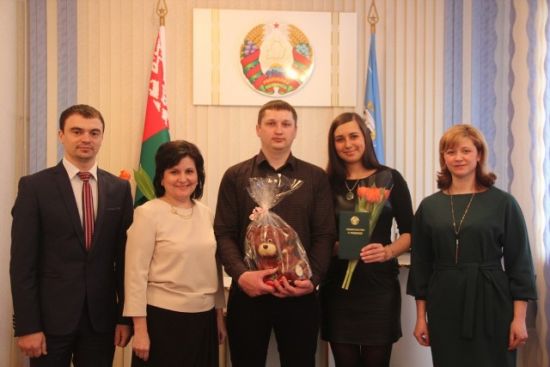Согласно плану мероприятий, посвященных 100-летию со дня образования органов загса, в отделе загса Ивановского райисполкома Брестской области проведена акция «Слава женщине, дающей жизнь» - чествование матерей, обратившихся за регистрацией рождения детей накануне Дня женщин. Самое главное чудо на свете, когда в семье появляются дети. Рождение ребенка – это маленькое чудо, волшебство и подарок судьбы. Когда рождается ребенок, то ему необходимы не только родительская забота, радость и умиление окружающих — ему необходимо стать законным гражданином своей страны. Регистрация рождения – это не простая формальность, а своего рода вхождение малыша в общество, когда он получает статус гражданина Республики Беларусь и соответственную защиту со стороны государства. За 2 месяца 2017 года в Ивановском районе зарегистрировано 58 рождений. Накануне Дня женщин в отделе загса и сельских исполнительных комитетах района в торжественной обстановке чествовали 8 матерей, обратившихся за регистрацией рождения детей. 7 марта 2017 года в отделе загса Ивановского райисполкома состоялась торжественная регистрация рождения первенца в семье счастливых родителей Дениса Ивановича и Натальи Николаевны Дашкевич. По взаимному желанию родителей сыну дано имя «Ярослав», что означает «яркий», «сильный», «славный своей жизненной силой». На церемонии прозвучали тёплые слова в адрес мамы и папы, бабушек и дедушек, неоднократно подчёркивалась особая роль родных и близких в достойном воспитании ребёнка. В этот праздничный день начальник отдела загса Новик Татьяна Васильевна торжественно вручила родителям первый в жизни ребенка документ – свидетельство о рождении, отметив, что рождение Ярослава произошло в канун замечательного весеннего праздника – Дня женщин и в год 100-летия со дня образования органов загса Республики Беларусь. С поздравлением молодой семьи в связи с рождением малыша обратился к родителям первый секретарь Ивановского районного комитета общественного объединения «Белорусский республиканский союз молодежи» Дубик Сергей Анатольевич. Молодой семье Дашкевич были вручены сотрудниками отдела загса цветы, поздравительные открытки и памятные подарки. Кроме того, в этот день начальник отдела загса Новик Т.В. торжественно поздравила молодую пару, принявшую решение создать семью и, обратившуюся в отдел загса, для подачи заявления на регистрацию заключения брака. |