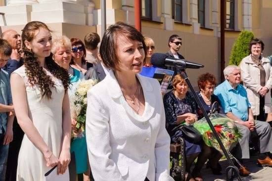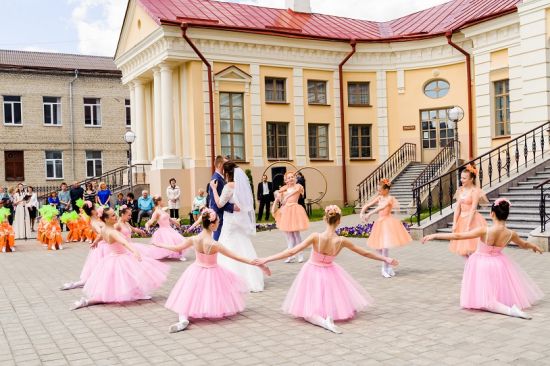 После окончания торжественной церемонии в загсе праздник «Венец всех ценностей –семья» переместился  на площадку возле Дворца Бутримовича. Под дружные аплодисменты собравшихся молодожены вместе с балетной группой хореографической школы города еще раз станцевали свой супружеский танец, приняли поздравления и подарок  от общественной организации «Белорусский Союз  женщин»,  напутствие на долгую и счастливую семейную жизнь от золотых юбиляров, семьи Тытунец.