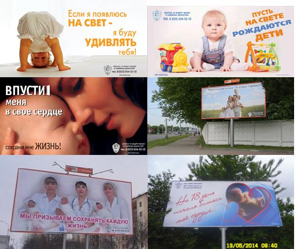 На протяжении трех последних лет БМКПОО «В защиту жизни и семейных ценностей» размещает социальную рекламу более чем на пятидесяти биг-бордах таких городов как Брест, Кобрин, Малорита, Жабинка, Могилёв, Гомель, Витебск.